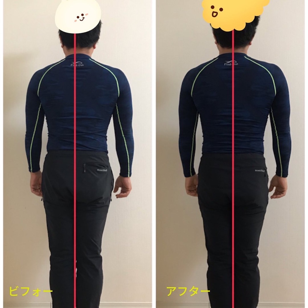 巻き肩、O脚、反り腰、骨盤の傾きなどと矯正箇所はたくさんありますがひとまずマイナスの状態からリセットさせていきます。