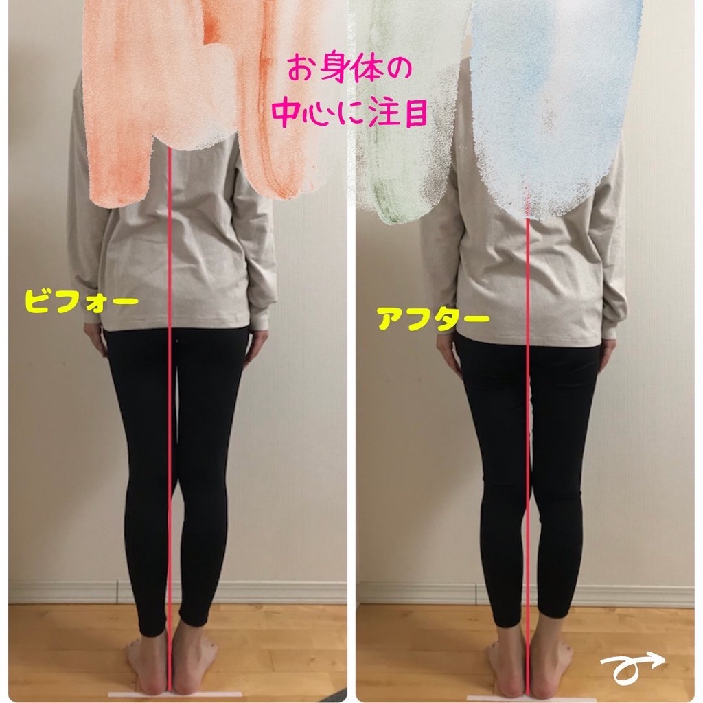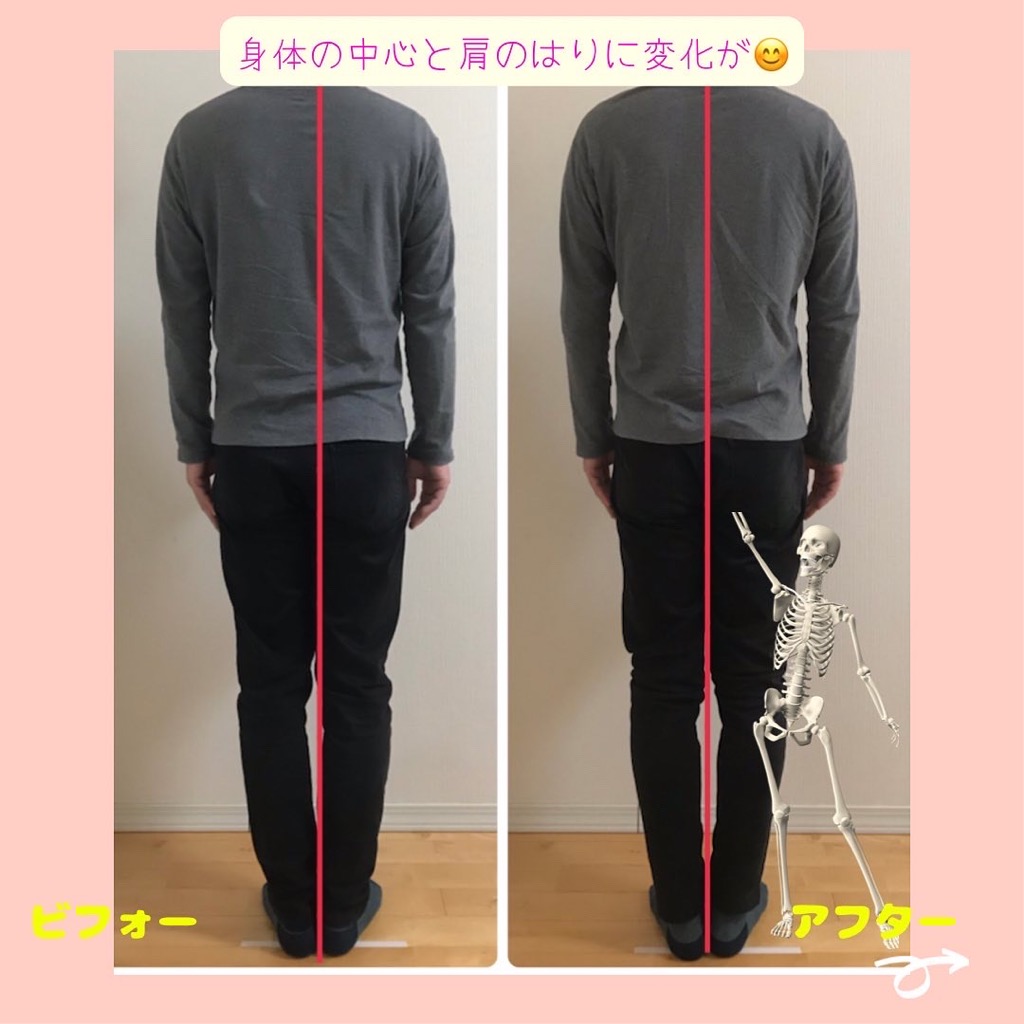 骨盤の傾きが少し強く出ていたので調整させていただき、足の長さも綺麗にそろいました。