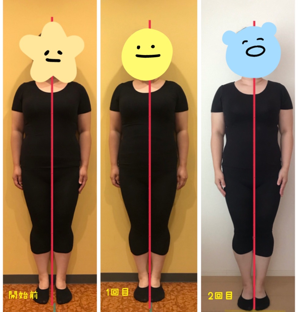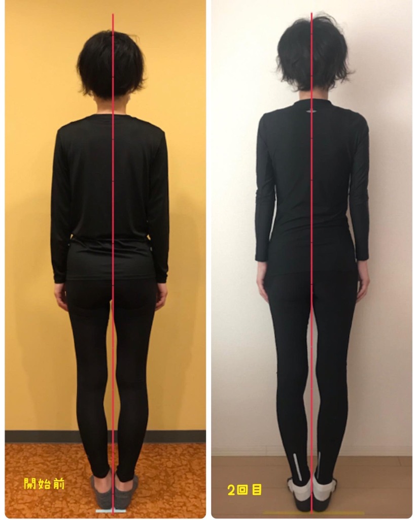 猫背と反り腰が気になるということで全身にある100個所以上ある骨にアプローチし、まずは歪みをリセットしていきます。歪みがきついと1回では戻らないのですが今回2回目の施術である程度中心に体がやってきました。