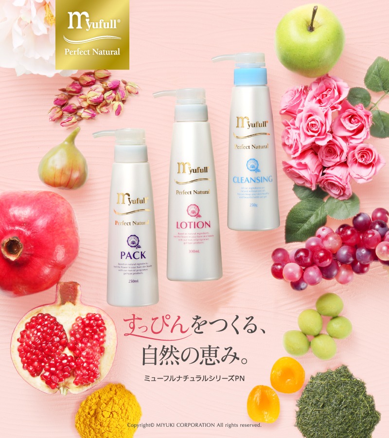 ミューフルのPNシリーズのクレンジング・ローション・パックを使用してきます。