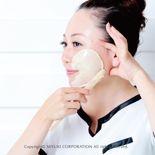 ⑤パック…コラーゲン原液100%のパックにをお肌にたっぷり入れ込んでいきます。